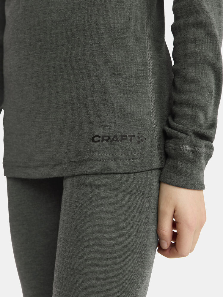 Core Wool Merino Set Jr includes a long-sleeved baselayer jersey and underpants made of a soft merino wool and polyester blend that keeps you dry and warm all-day long. The combination of mulesing-free merino wool and highly functional polyester ensures excellent thermoregulation during low- to medium-intensity activities. In addition, the fabric’s soft and fine fibers provide a smooth touch against the skin, making the garments a great choice for alpine skiing, trekking and hunting